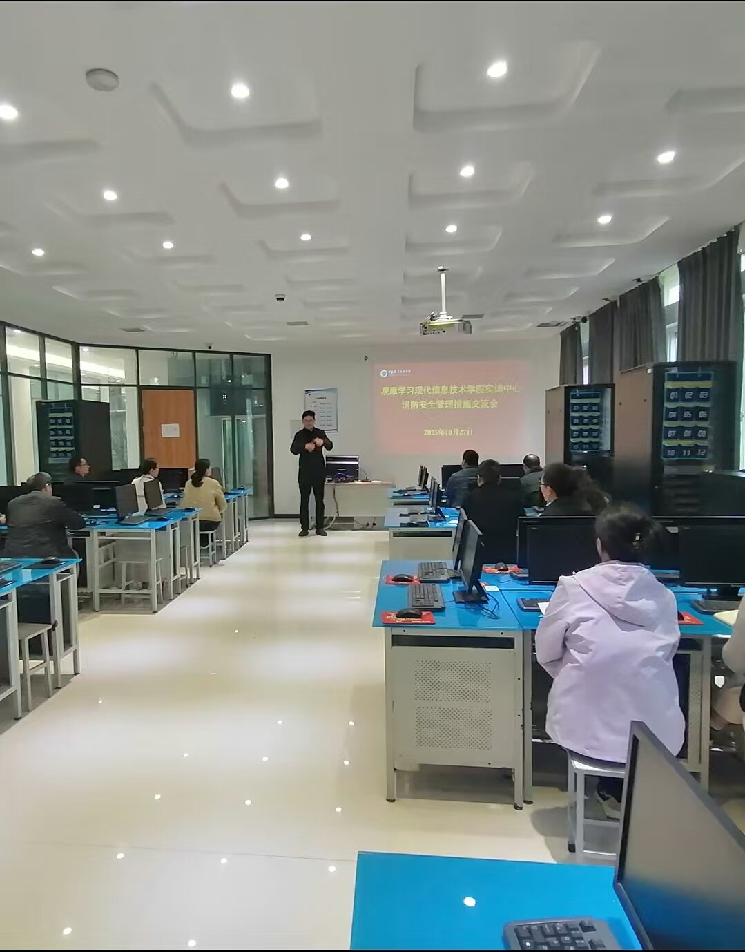 10月27日下午,为共同提高实训室消防安全管理水平。根据河南职业技术学院安全稳定协调联动暨“化解矛盾风险维护社会稳定”专项治理工作专班会议精神,党委保卫工作部联合现代信息技术学院举办实训室消防安全管理观摩活动。各二级学院主管实训教学的院领导及实训中心负责人参加观摩交流活动。